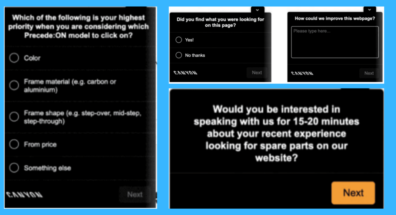 Sarah says that the feedback widget on Canyon’s website helps them get real and raw feedback from the users.